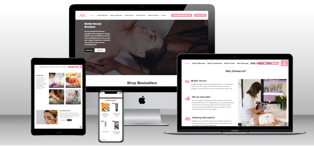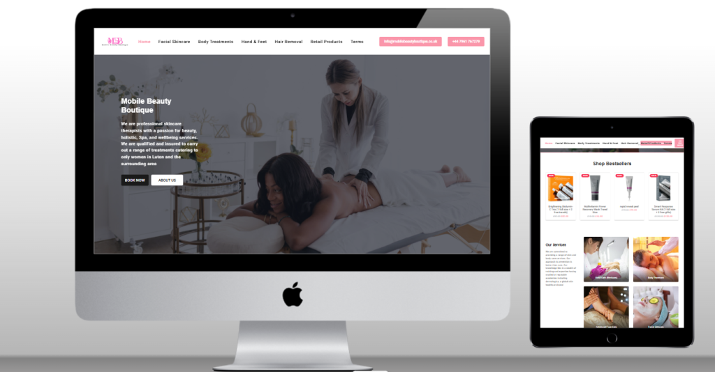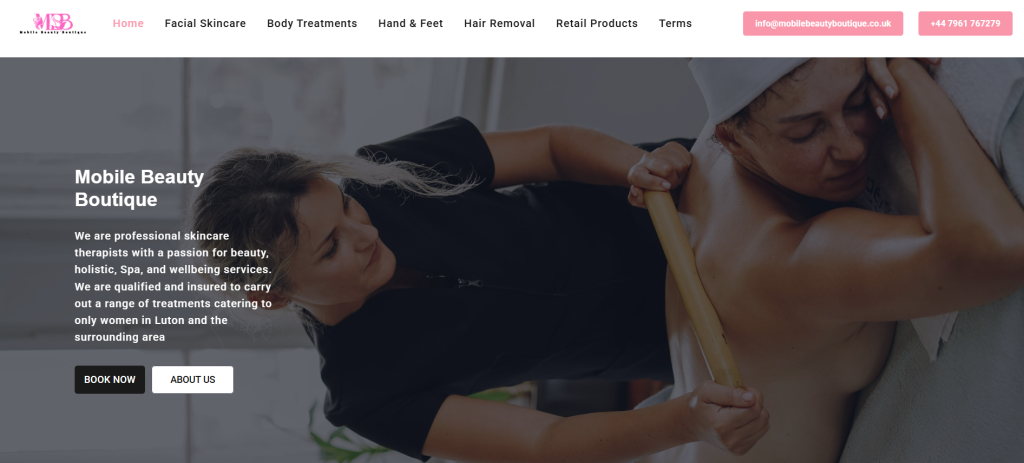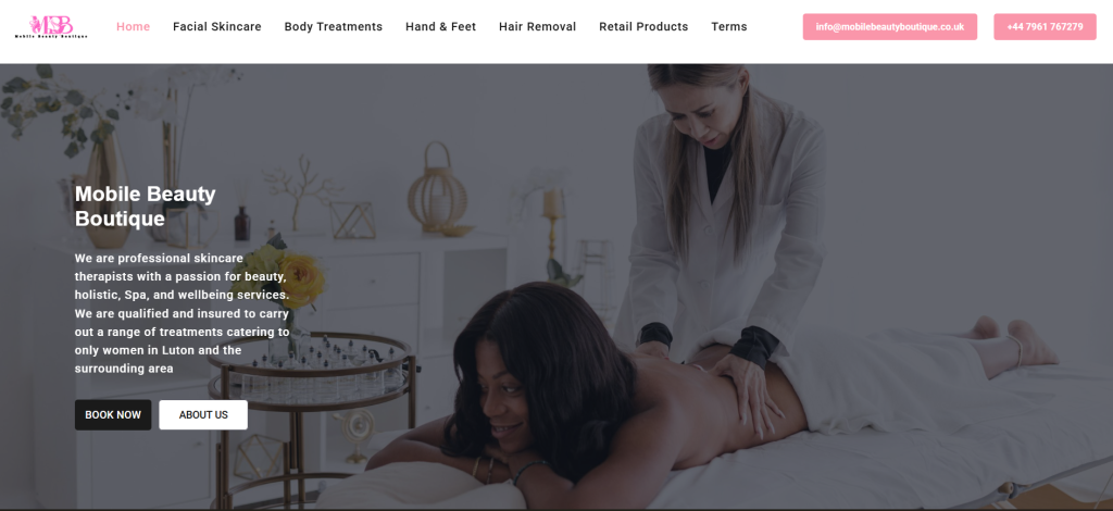 MobileBeautyBoutique.com is a modern, service-focused website I designed for a mobile massage and facial therapy business based in Luton. The goal of the project was to create an elegant, trustworthy, and conversion-driven online presence that helps the business attract local clients searching for mobile wellness services.